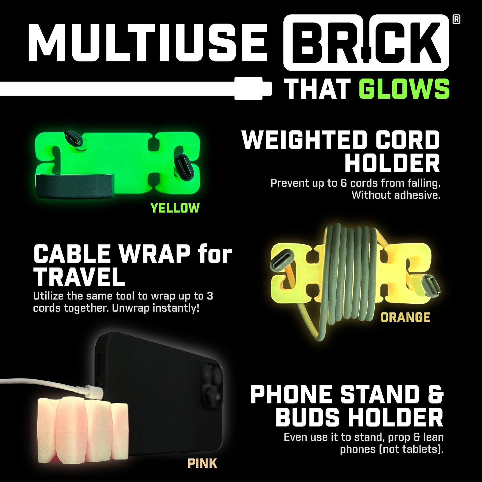GlowBrick - Weighted Silicone Cord Holder for Nightstand. Traveling Cable Wrap, Phone Accessory, Stocking Stuffer